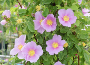 くすみのある独特なローズピンク、直立状のがっしりとした樹になり脇の細い枝に花が咲く。1818年頃から知られる、古いガリカローズのひとつ。
