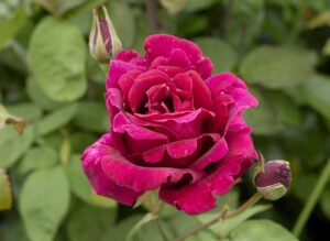 良く咲くと深い黒赤の大変美しい花となる整形花。非常に強く濃厚なダマスクの香りを放ちます。花付きも大変良く、親譲りの強健さも健在です。寒さにも意外に強く、寒冷地にもおすすめできます。ミニチュアローズにも同名の品種がありますが、こちらは別品種ですのでご注意ください。