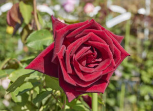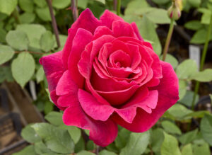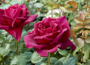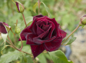 情熱的な素晴らしい芳香を放つ見事な黒赤ばら。樹が偏りがちだが花付きは意外によい。偉大な作出家「シャルル・マルラン」へと捧げたばらです。