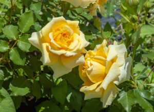 黄色に赤い覆輪がかかり、最後は赤でおわる華やかな色彩で、誰でも踊れるダンスとして一世を風靡した「チャールストンダンス」を彷彿とさせます。樹は半直立にまとまり、明るい緑の照葉との調和もよい。