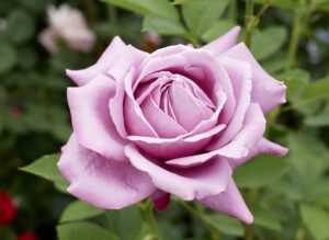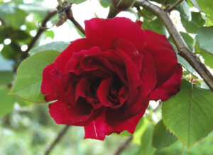 戦前を代表する赤ばらのひとつ。重ねが少なくおおらかな花容から豊かなダマスク香が漂います。弁質がよく鮮やか。
