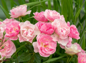 珊瑚オレンジとピンクが複雑に混じりあう、暖色系の色彩と俯いて咲く可憐な姿が魅力のチャイナローズです。甘いティーの香りを持ち、枝は細く横張りで、樹高は低めです。ポリアンサローズとの交配もされ、その独特な色合いを後世に引き継がせています。