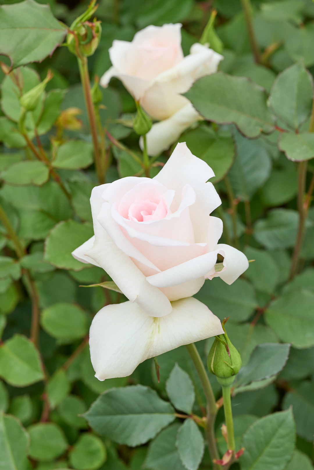 四季咲き品種は気温さえあれば安定して何度も開花するため、枝は固くなり早期に自立します。枝が伸びやすい方向は品種によって異なり、「半横張り」は比較的「枝が横張り気味」の樹形となる品種に割り振っています。