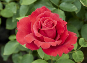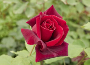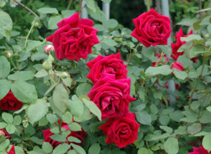 この品種によりはじめてビロード調の深紅色が出現し、のちの多くの赤ばらの名花を誕生させた、歴史上忘れることのできない品種のひとつです。横張りで木の生育は緩慢ですが花付きは良好です。