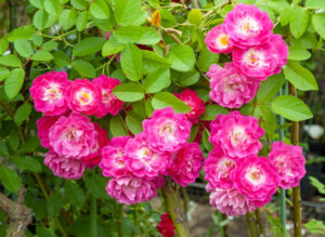 どちらかといえば一季咲き品種や、返り咲きが少ない品種で該当が多いです。枝は曲げやすく、フェンスや壁面など、広くさまざまな植栽場所に対応しやすい樹形です。