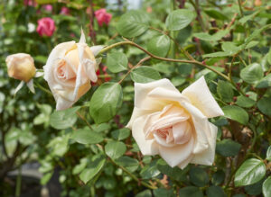 四季咲き品種は気温さえあれば安定して何度も開花するため、枝は固くなり早期に自立します。枝が伸びやすい方向は品種によって異なり、「半横張り」は比較的「枝が横張り気味」の樹形となる品種に割り振っています。