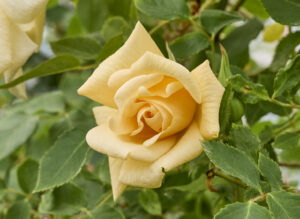咲き始めの黄色が美しく、返り咲きが多いので長く楽しめます。少し枝が曲がりにくいので壁面など、高さのある場所での植栽が望ましいでしょう。