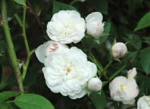 丈夫なことで良く知られていますが、花も深みのある黒赤で味わい深いものです。花付き良く花の時期は株が花で覆い尽くされるほど。耐寒性も高い方です。トゲが少なくしっかり伸びる太めの枝はスタンダードの台木にも活躍します。