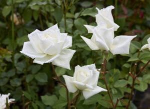 「カレドニア」と「マダム ジュール ブーシェ」という戦前の名花による交配で高貴な美しさに溢れる。花つきもよい。