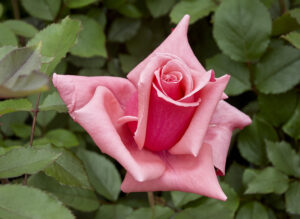 少し銅色を含む独特の朱赤色でクイーン・エリザベスの親品種としても有名です。大輪種に先んじてペラルゴニン色素による鮮やかな朱色を顕現し、その後作出されたインディペンデンスなどと共に、大輪系に朱色ばらをもたらすきっかけともなりました。丈夫で花付きも良好です。