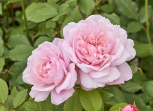 豪華な芍薬咲きの花型と、クリーム色にわずかにピンクがかかる、デリケートな色調がとても美しいばらです。花色は気温に左右される度合が大きく、秋の花はとりわけ素晴らしい。
