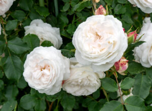 ルイズダルザンの実生品種とされごく淡く桃色がかかり、ふっくらとした美しい花容と象牙のような優しい色彩が大変魅力的です。枝は自立型でやや堅めですが大きめのアーチなどで楽しんでみたい。