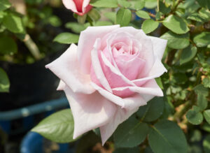 極初期のハイブリッドティー種として現在では非常に貴重な品種。後に初の黄色ハイブリッドティー種を作った「ペルネ=デュッシェ」の作品です。光沢のある鮮やかなピンク色の整った剣弁咲き。初期の品種らしく開花が進むと花型がロゼット状に乱れます。枝が細く繊細なのはティーローズ譲りでしょうか。かつては「鳴海」の名で親しまれました。