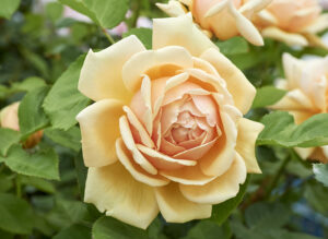 「リヨンの魔術師」こと「ペルネ=デュッシェ」の作出です。少し黄色味がある独特なミルキーホワイトの大輪花。古いばらの特徴である繊細な細枝の樹にうつむき加減に咲く花が魅力。現代では貴重な品種です。