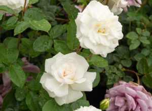 清らかな白に時に中心グリーン・アイを見せる、清涼感あふれる品種です。本来のアルバローズとは枝葉の雰囲気が異なり、繊細で細い枝は良く伸長します。交配情報などがはっきりしませんが魅力的なオールドローズであり、誘引しやすい枝ぶりでアーチやフェンス、窓まわりなどに大活躍してくれます。香りもよく小さめの明るい緑の葉も美しいものです。古い枝にはトゲが少なく、丈夫で成長も早いですが寒冷地では越冬にやや注意が必要です。