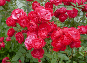 変わらぬ人気の品種です。ローズピンクの可愛らしい八重カップ咲きの小輪で、その形の良さが長く続きます。房咲きになり樹高は 60cm 程度。花は繰り返し初冬まで咲きます。大変花持ちが良く、照葉で耐病性・耐寒性も高い名品種の1つです。寒冷地の方にもおすすめ。多くの枝変わりを持っています。