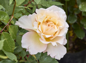 樹は丈夫で非常に強健、直立状に高く伸びます。ステムが長く、花弁数は30~40弁程度で開ききると乱れてきます。黄色品種の宿命で病気等の耐性はありませんが、歴史的な名花であることには変わりません。つる性種もございます。