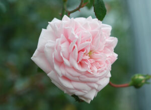 返り咲くつるばらの先駆的品種で花名のニュードーン(新しい夜明け)にその思いが良く表れていると思います。真珠色の花色は美しく、野ばらの香りがあり、伸長力も旺盛。大変丈夫な品種として有名です。ステムが少し長くトゲが多いので扱いやすい品種とは言えませんが、耐寒性や耐病性に優れ、はらはらと散り際もきれいです。歴史的にも重要な品種で今後も残しておきたい。