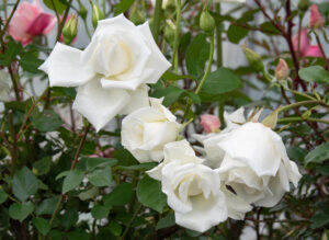 美しい乳白色、もう少し丸く咲くこともあります。フレッシュなティのかおりと俯いて咲く風情がやはり愛らしい、初期のティーローズです。スタンダード仕立ても面白いでしょう。