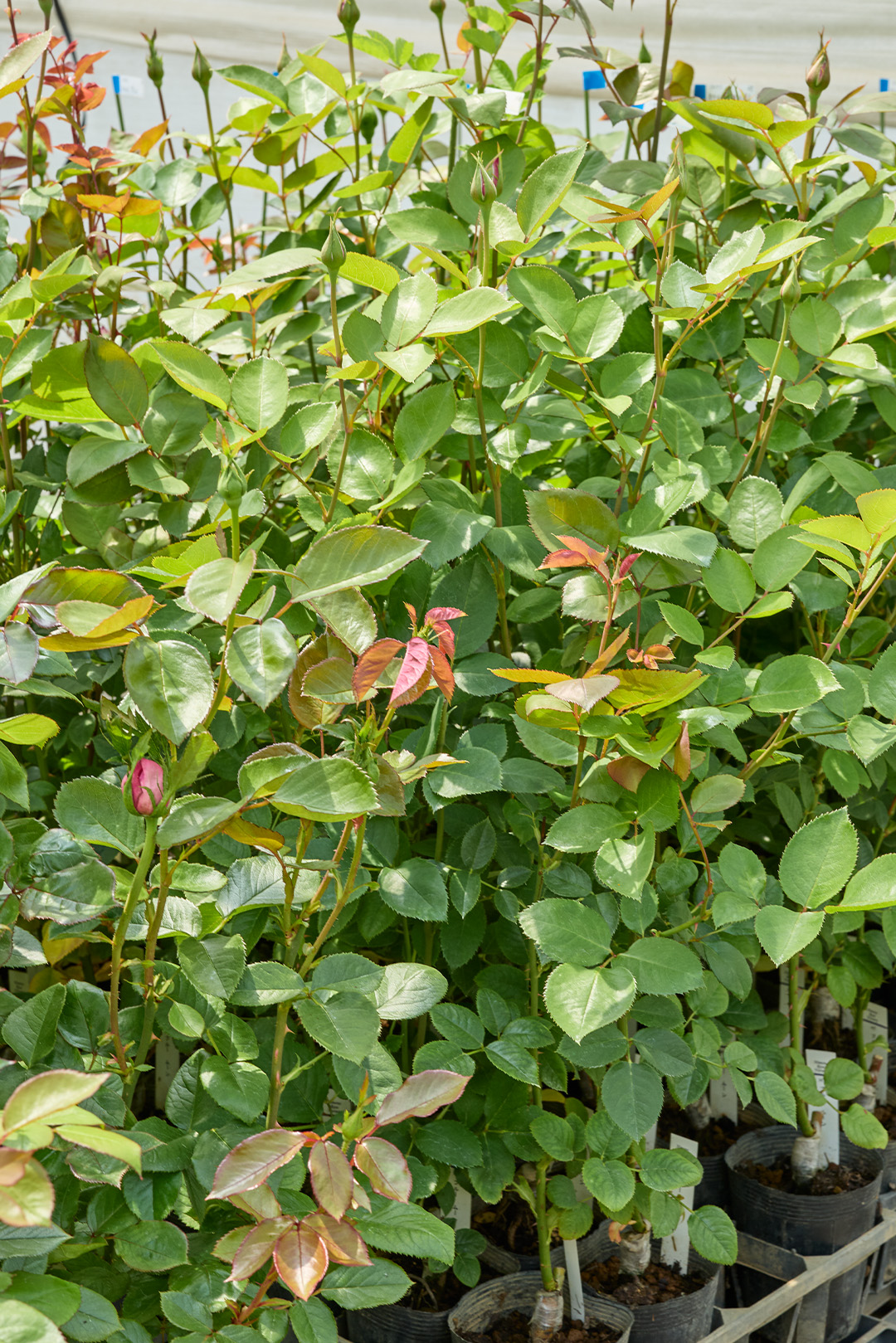 最初のフロリバンダとして知られる「エルゼ・ポールセン(Else Poulsen)」の枝変わり品種、名前どおり花弁が大きく波打ち、濃いローズピンクの花色と相まってとても華やかな雰囲気を持っている品種です。大房咲きで花持ちも良く、樹高はかなり高くなるので花壇では後方に植栽します。
