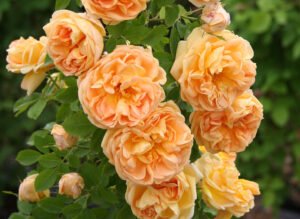 現代バラに黄色の遺伝子を渡した品種で、「ロサ フェティダ ペルシアーナ」とも呼ばれます。思いのほか花径も大きく、輝くような黄金色が素晴らしい。若葉に爽やかな香りがあります。