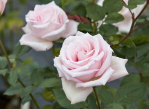 気品あるソフトピンクの超美麗花。ハイブリッドティーローズの理想を体現した、究極の品種といえるでしょうか。花色は上品な桜色、花容の美しさは言うに及ばす、光沢のある深緑の葉は比類なき美観となります。膨大な品種が存在するばらの中でも、この品種ほど葉色と花色の調和がよいものはそうそう見られないと感じます。株立、株姿ももちろんよく半直立状に、樹高高く立派な株となります。ほのかなティの香りがあり、すべてにおいてバランスが取れた品種です。競技花としても活躍しています。デリケートな花弁は雨で傷みやすかったりと、欠点がないわけではありませんが、それでも困難かいくぐって咲く本来の花に出会えたときの喜びは至高のもの。ハイブリッドティーローズの王者的存在として、間違いなく今後も愛され続けることでしょう。