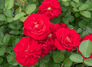 コルデス作出のミニチュアローズ。艶のある深い深紅が美しい。ミニチュアローズの中ではやや大型でしっかりとした枝ぶりとなる。ドイツらしい風格のある品種。